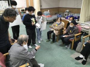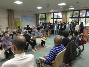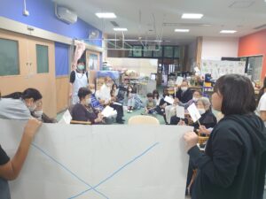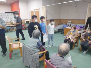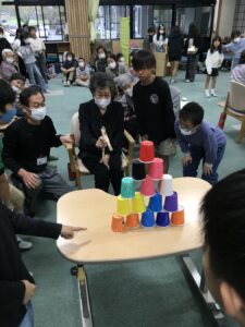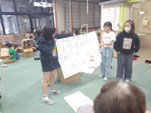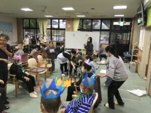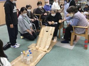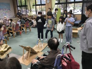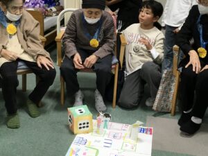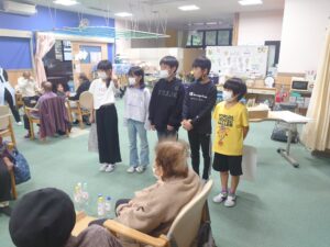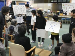 今回の福祉教育では、前回までの学習を踏まえ、7班に分かれオリジナルのレクリエーションを考えデイサービスのご利用者様に披露しました!!