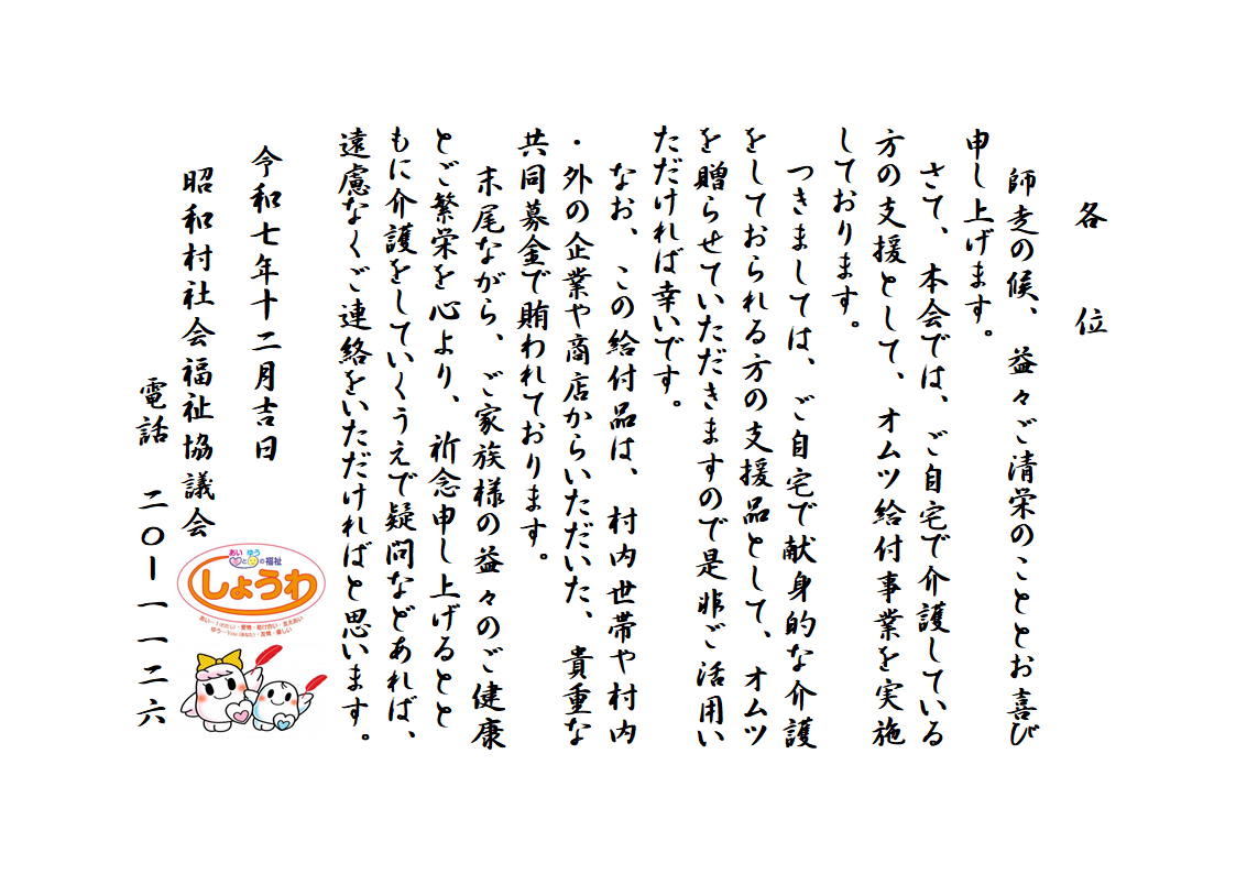 • 令和8年度昭和村学童クラブ通年入会のご案内 2025年12月4日