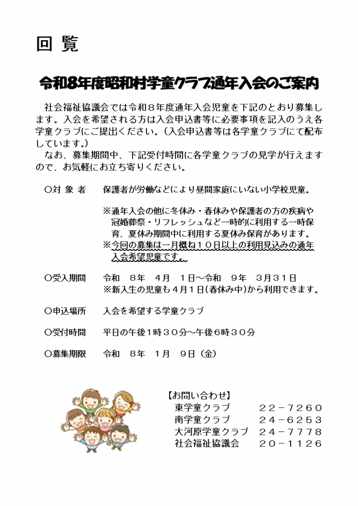 社会福祉協議会では令和8年度通年入会児童を募集します。