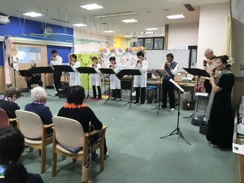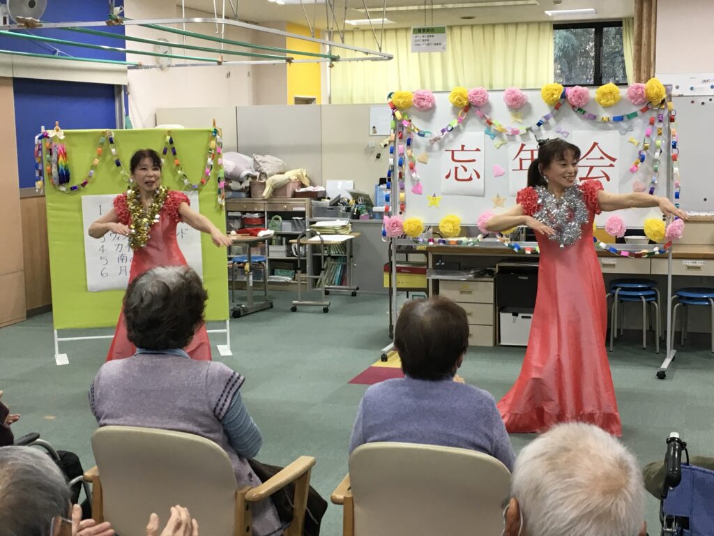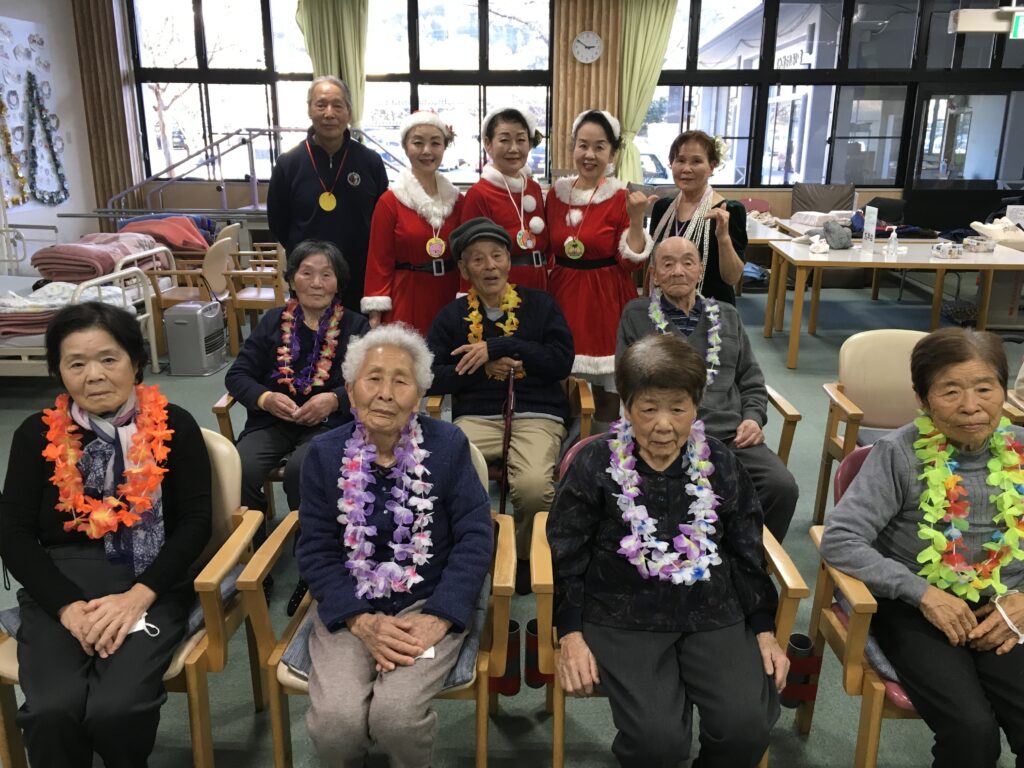 おやつの『お楽しみ+選択  🍹飲み物☕』に加えて、地元保育園の園児達、オカリナ昭和・ロケラニ(フラダンス)、谷間のユリ(フラダンス)の方々が慰問に来て頂き、とても華やかな忘年会になりました。