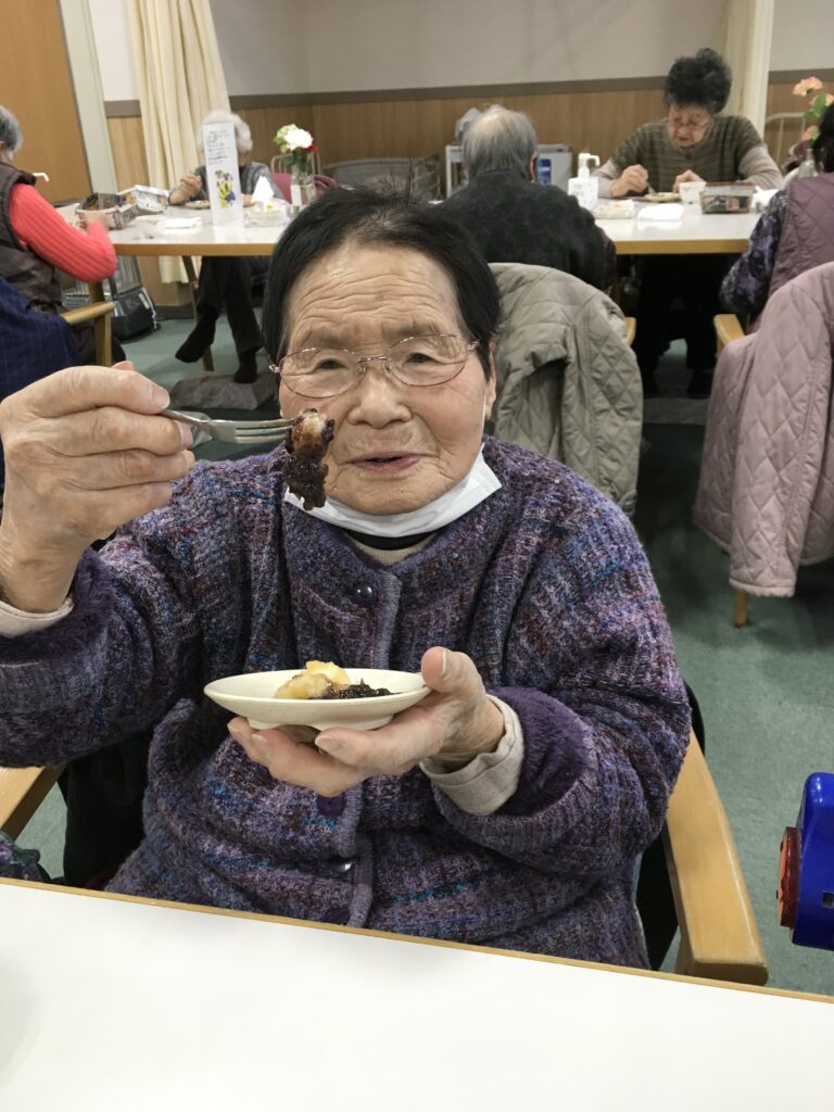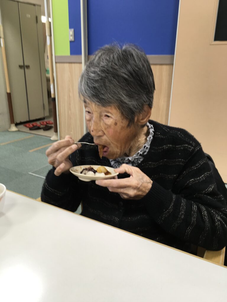 利用者様は自分達でついた餅を美味しそうに食べられました。