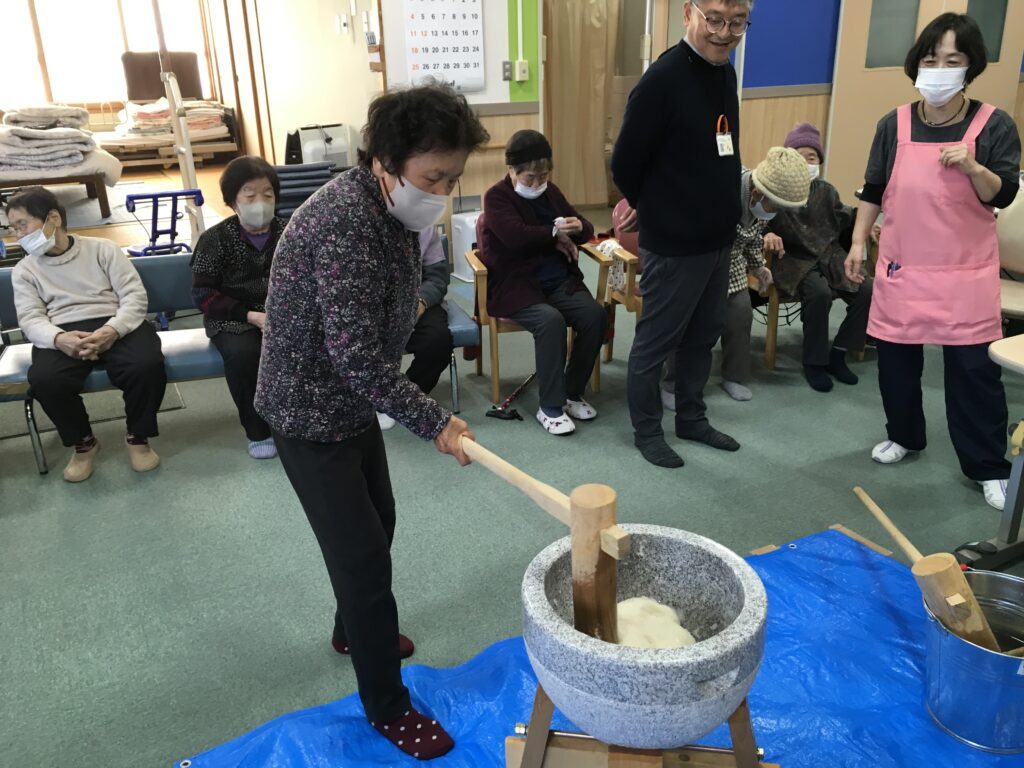 地域密着型通所介護事業「昭和の里」では、1月13日(火)~16日(金)の4日間、もちつき大会を開催しました。