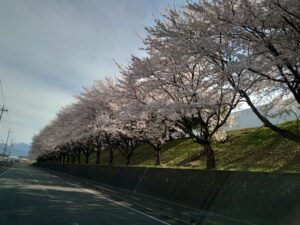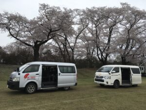 各所で綺麗な桜を目の前にご利用者様からは「綺麗だね~」「すごい!」「晴れてればもっとっ綺麗だったのにね」などの声が聞こえてきました。おっしゃるとおり5日中2日は小雨のパラつく中のドライブとなりました(残念)